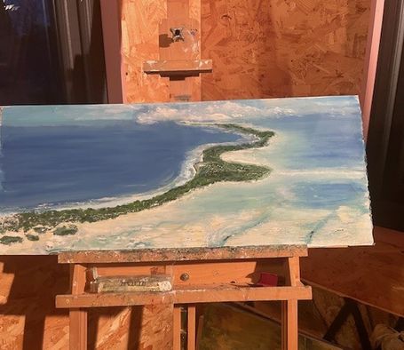 An early rough draft of the album cover in oil at La Source art studio (thankyou to Jo)